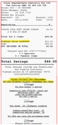 The maximum amount of points that can be redeemed per transaction is 80,000 Flybuys points (equivalent to $400 off their shop). The dollar off shop value presented at the checkout is the only amount that they will be able to redeem instantly at checkout during the Redeem Period, however Flybuys Dollars will also be available. If members have more than 2,000 points in their points balance after making any eligible transaction, they will continue to receive the prompt in-store at Coles. Offer valid in-store only at Coles supermarkets (excludes Coles app and Coles Online). Flybuys points and Flybuys Dollars have no cash or monetary value.